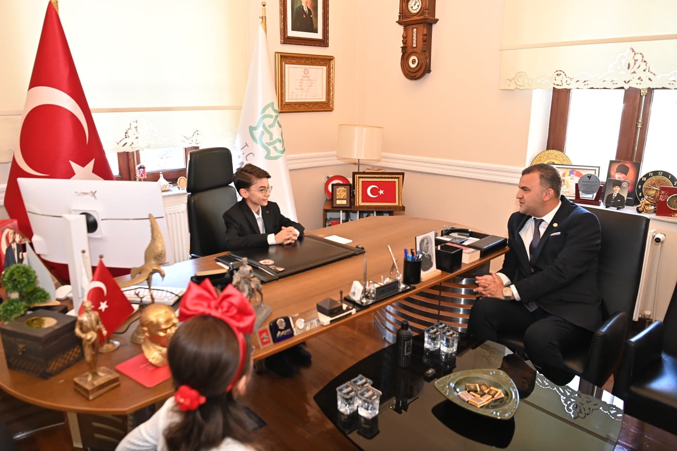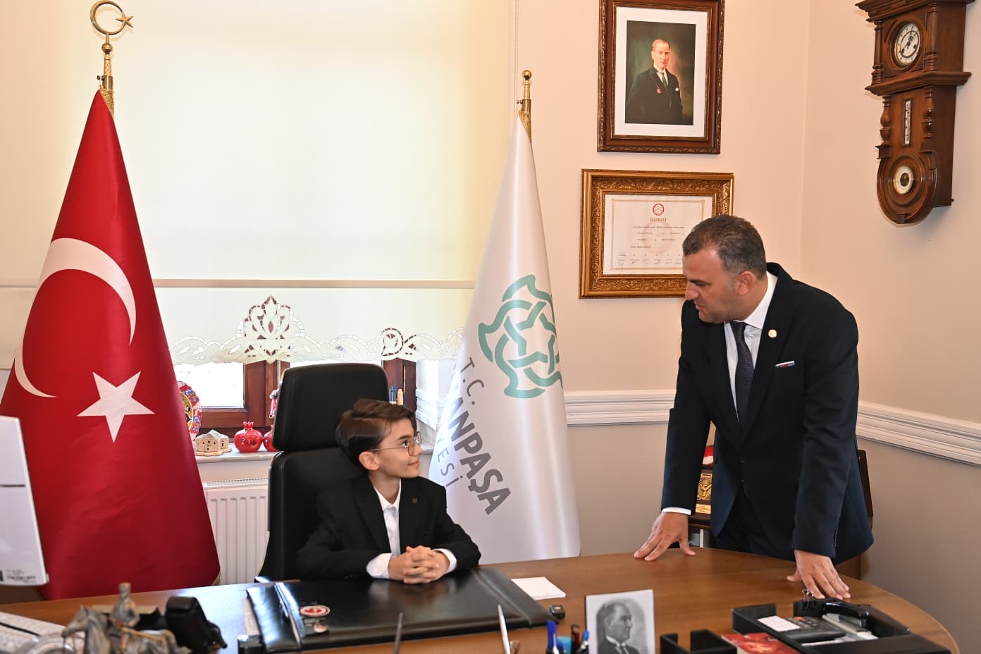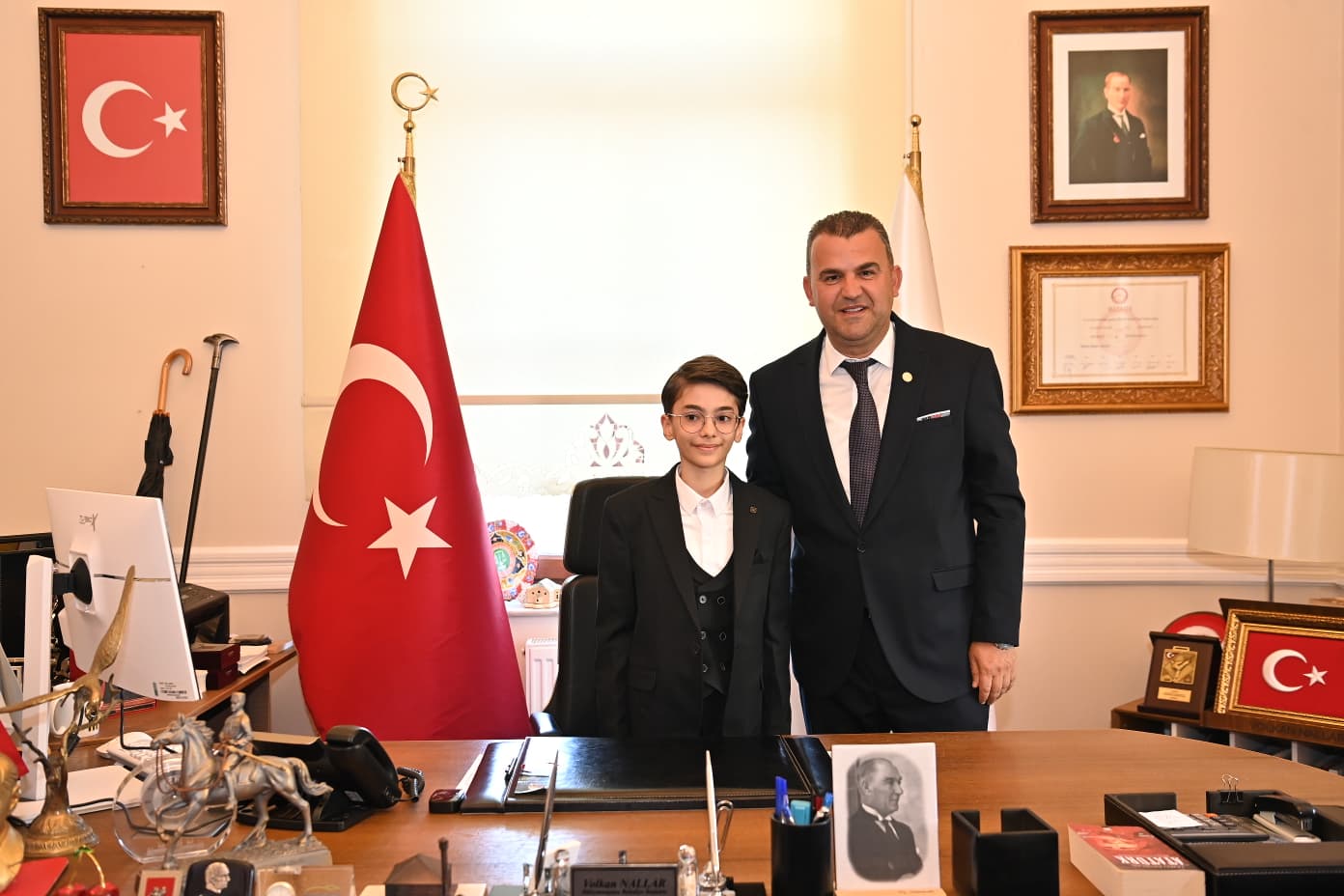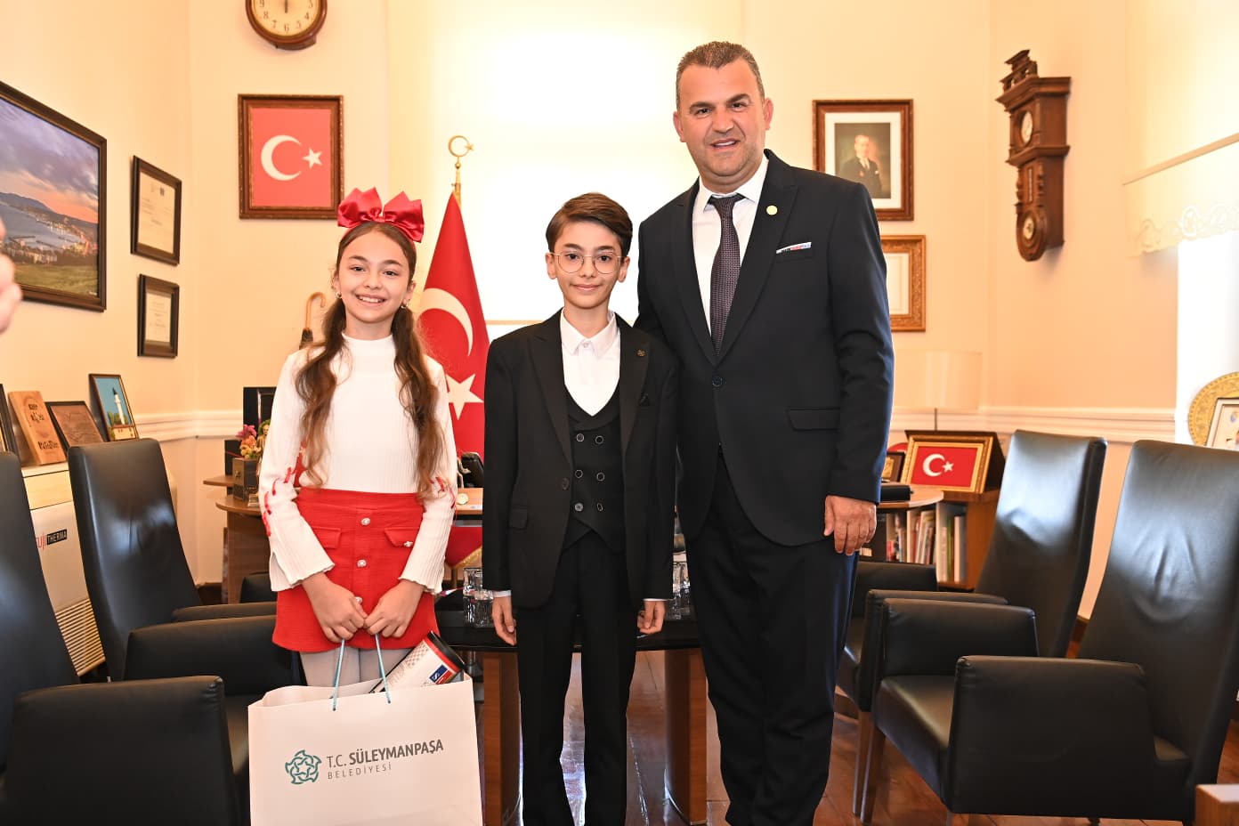 Gazi Mustafa Kemal Atatürk’ün tüm dünya çocuklarına armağan ettiği 23 Nisan Ulusal Egemenlik ve Çocuk Bayramı kutlamaları kapsamında; Süleymanpaşa Belediyesi makamında anlamlı bir tören gerçekleştirildi. Geçtiğimiz günlerde büyük bir demokrasi şöleniyle Süleymanpaşa Çocuk Meclisi Başkanı seçilen Kuzey Keskin, 23 Nisan dolayısıyla Süleymanpaşa Belediye Başkanlığı koltuğuna oturdu.