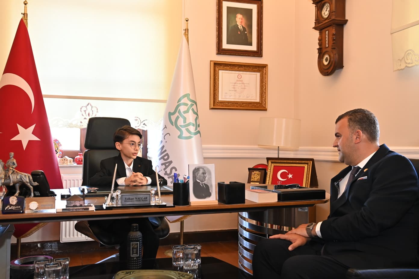 Başkan Volkan Nallar tarafından kapıda karşılanan ve makam koltuğunu devralan Kuzey Keskin, temsili başkanlığı süresince ilçedeki çocuklar için hayata geçirmek istediği projelerden bahsetti. Süleymanpaşa'yı çocuklar için daha eğlenceli ve yaşanabilir bir kent haline getirmeyi hedeflediğini belirten genç başkan, ilgili müdürlüklere çocuk parklarının ve spor alanlarının artırılması yönünde ilk talimatlarını verdi.