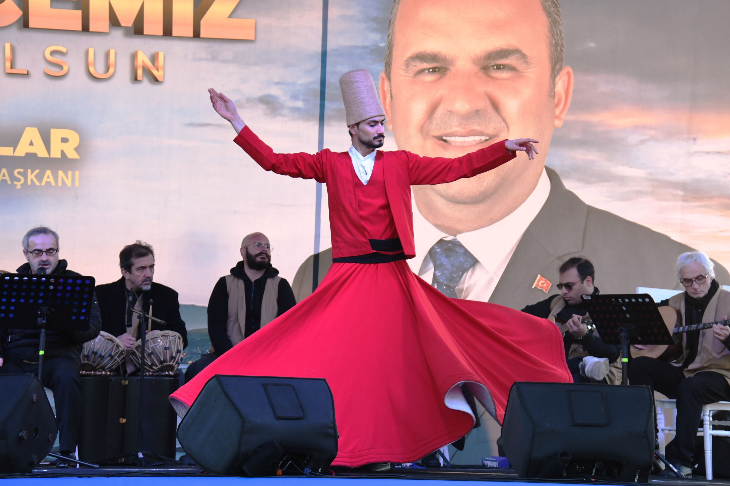 Kadir Gecesi’nin feyzine ve ruhuna uygun olarak hazırlanan program, duygu yüklü ilahi dinletisi ile başladı. İlahilerin alanın dört bir yanını sarmasıyla birlikte manevi atmosfer doruğa çıkarken, vatandaşların arasında beliren semazenlerin büyüleyici gösterisi katılımcıların büyük beğenisini kazandı.