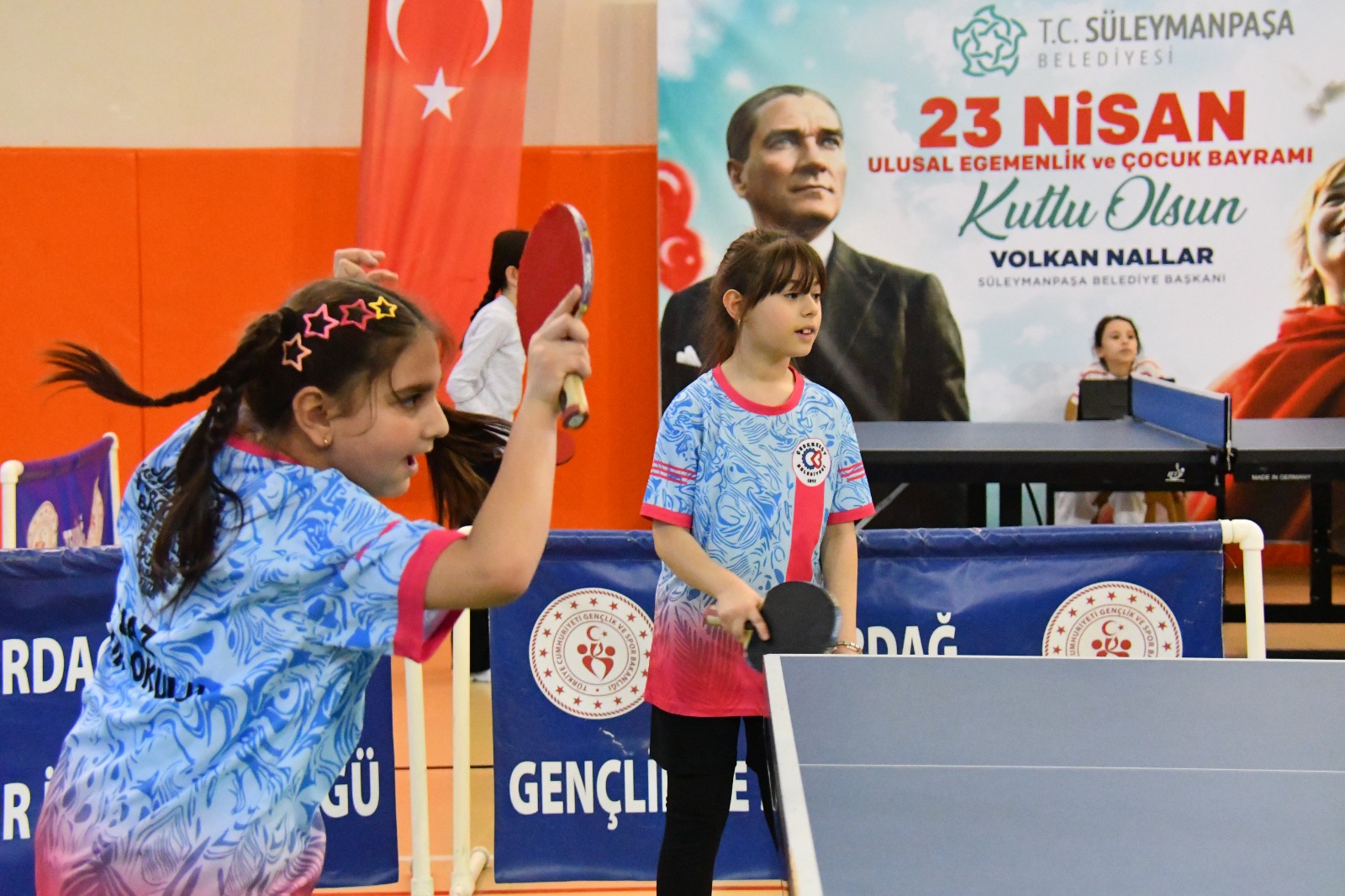 Gazi Mustafa Kemal Atatürk'ün çocuklara armağan ettiği 23 Nisan Ulusal Egemenlik ve Çocuk Bayramı, Süleymanpaşa'da sporun birleştirici ruhuyla idrak ediliyor. Bu kapsamda Süleymanpaşa Belediyesi ile Tekirdağ Gençlik ve Spor Hizmetleri İl Müdürlüğünün ortaklaşa hayata geçirdiği Masa Tenisi ve Atletizm turnuvaları büyük bir katılımla gerçekleştirildi.