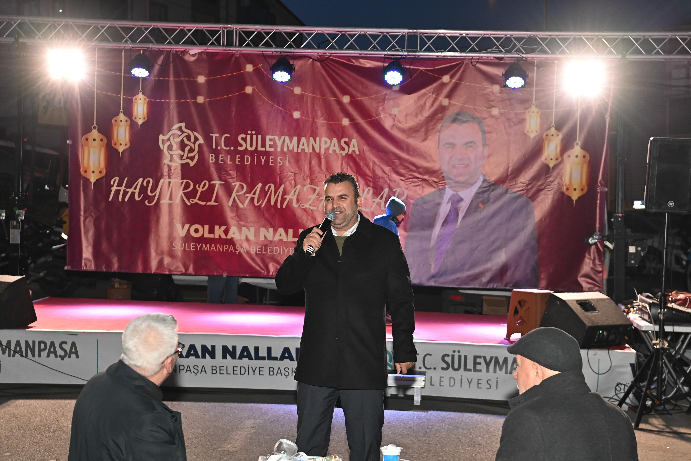 İftar saati öncesinde düzenlenen ilahi konseri, Ramazan ayının huzur dolu atmosferini mahalleye taşıdı. Vatandaşlar, okunan dualar ve ilahiler eşliğinde ezan vaktini bekledi. Ezanın okunmasıyla birlikte binlerce Süleymanpaşalı, aynı sofrada oruçlarını açmanın mutluluğunu yaşadı.